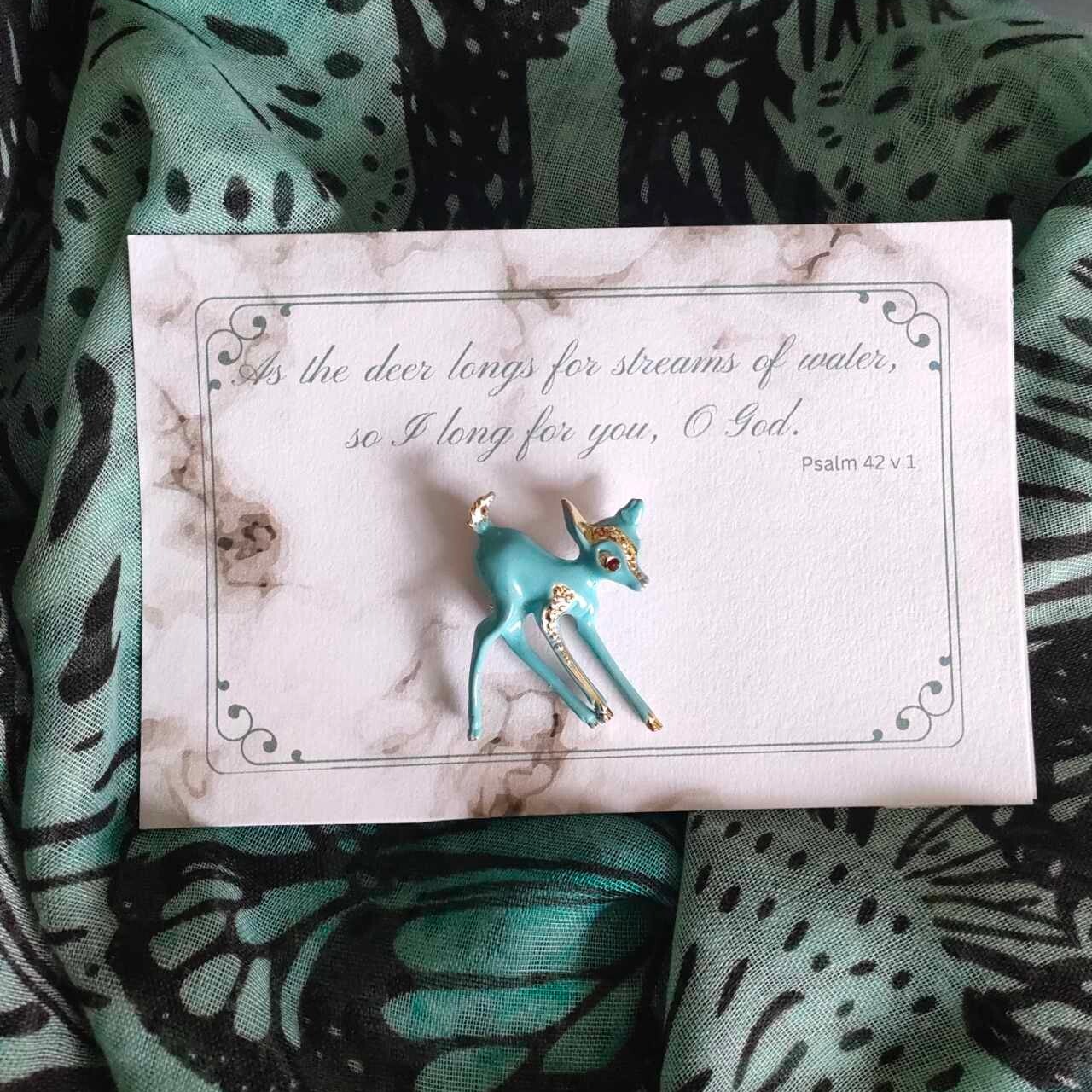 Vintage Brooch and Scarf Gift Set "As the Deer Longs for Streams of Water" Set, Longing for God, Christian Gift Set for women