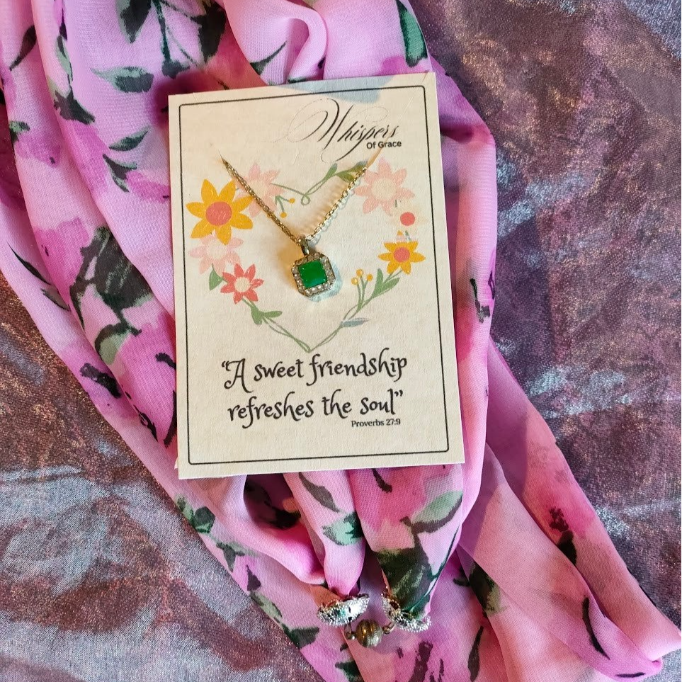 gift bag contains 1 necklace and 1 scarf