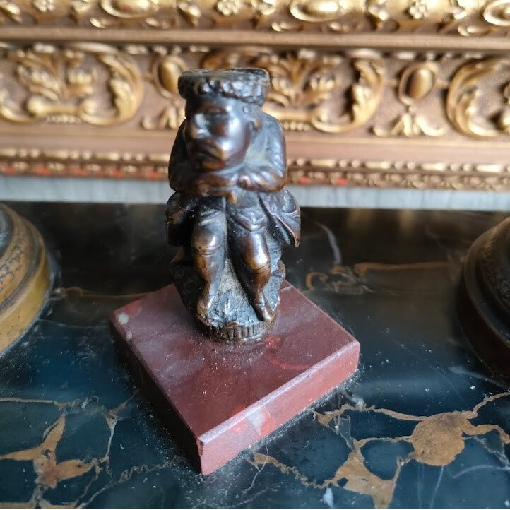 Antique French Empire Marble Inkwell Set with Bronze Mounts and Decorative Figure
