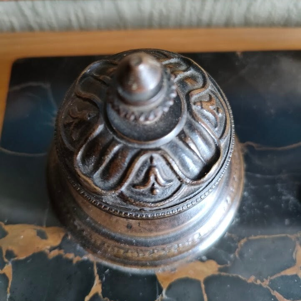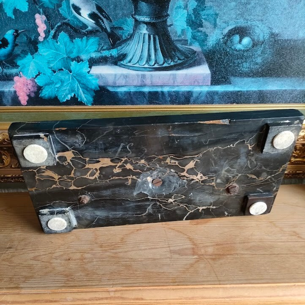 This sophisticated writing set would have graced the desk of a gentleman's study or office, representing both functionality and refined taste. The bronze elements show lovely aged patination, and the marble base provides a substantial, luxurious foundation for this practical yet decorative piece.