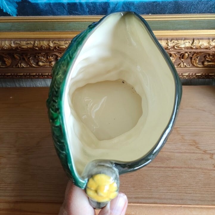 The jug beautifully captures the essence of a 17th-century Cavalier with his elaborate green feathered hat, flowing hair, and characteristic goatee beard. Royal Doulton's masterful hand-painting brings the figure to life with rich detail in the facial features, rosy complexion, and period-accurate styling that represents the Royalist supporters of King Charles I.